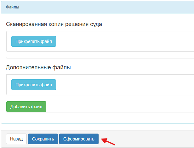 Для прикрепления подтверждающего документа (к примеру: Решение суда), доступна возможность нажать на кнопку "Прикрепить файл".