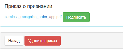 После подтверждения Уполномоченным органом Заявки с данным основанием – Система формирует и прикрепляет к Заявке Приказ уполномоченного органа в формате PDF.