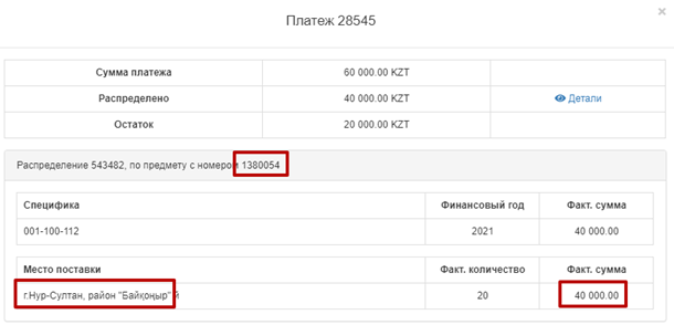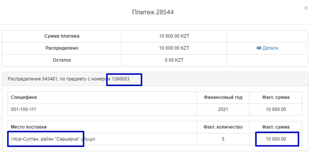 Для организаций, являющихся ГУ со спецификами, Система не позволяет удалить распределение платежа по акту, так как данные платежи проведены Казначейством. В случае возврата платежа по акту, необходимо обратиться к Администратору в лице МФ РК для удаления платежа и распределения по данному платежу.