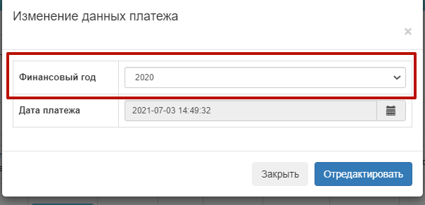 Корректировка финансового года платежа