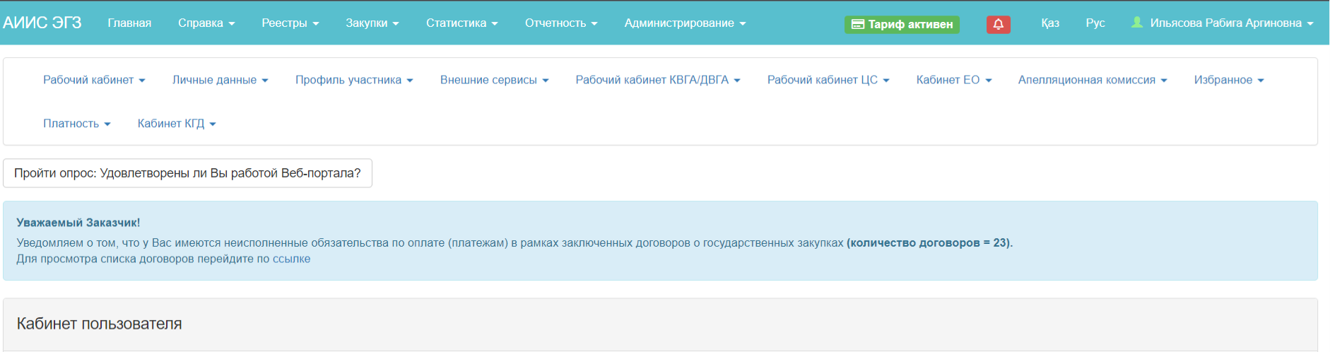 В случае если условия не будут выполнены в личном кабинете заказчика будет отображаться информационное уведомление со ссылкой на список договоров, по которым у заказчика имеются неисполненные обязательства.
