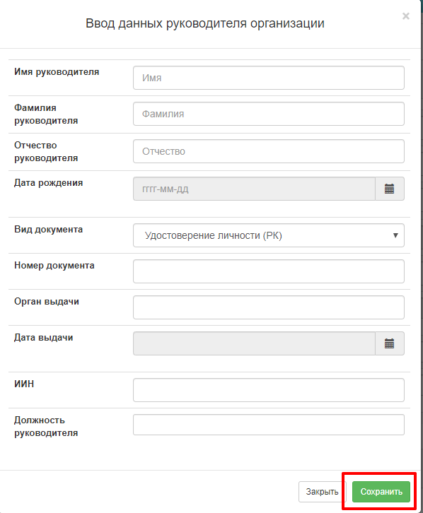 Для заполнения раздела «Данные о руководителе поставщика»  необходимо нажать .  В открывшейся форме необходимо заполнить обязательные поля.