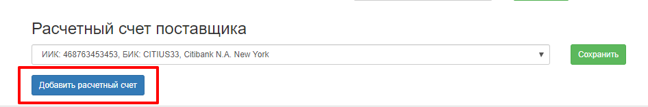 После добавления поставщика-нерезидента есть возможность добавить дополнительные расчетные счета.