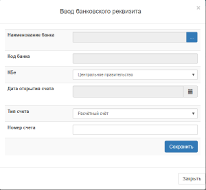 При заполнении данных «Банковского счета» откроется форма заполнения.
