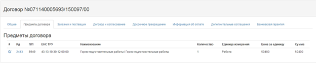 Для того, чтобы просмотреть сведения о лоте (-ах)  необходимо пройти во вкладку «Предметы договора».