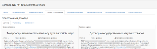 После того, как поставщик утвердит договор, система отобразит подтверждающее сообщение, и изменит статус договора на «Отправлен на согласование заказчику».
