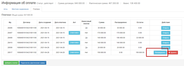 Төлемдерді қосқаннан және бөлгеннен кейін және Шарттың мәні бойынша барлық соманы «төлемдер» блогындағы «төлем туралы ақпарат»қосымша бетінде толтырғаннан кейін барлығын «орындау» батырмасын баса отырып орындауға болады.