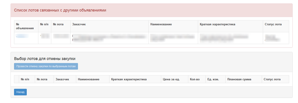 Также отмененный лот возвращается в пул заявок для публикации новой закупки.